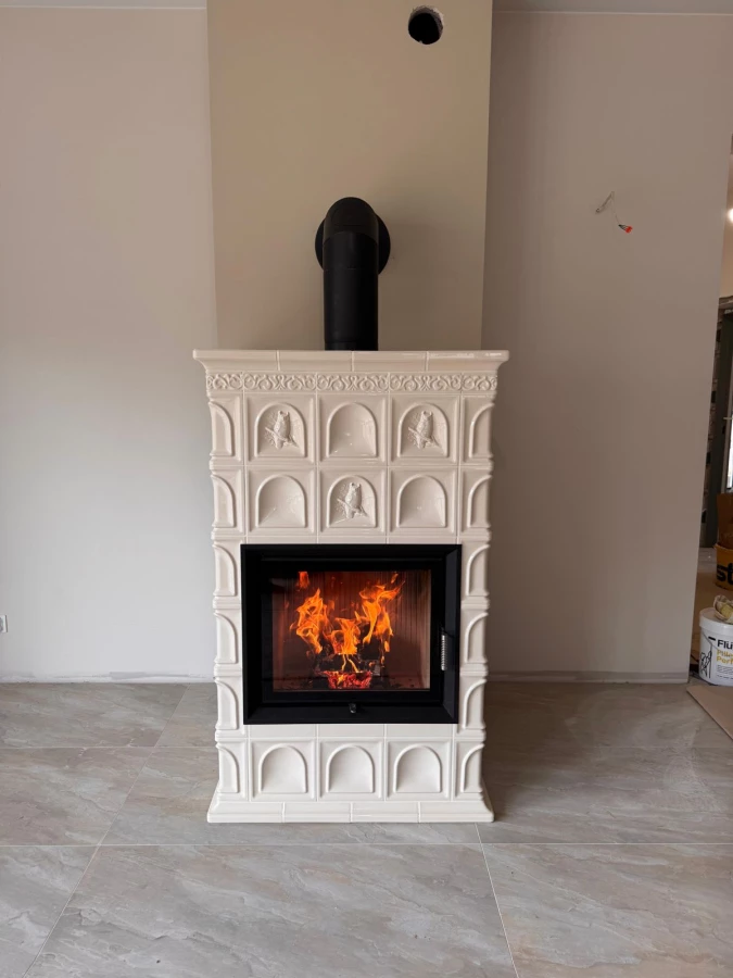 PIEC KAFLOWY W KOLORZE BIAŁYM