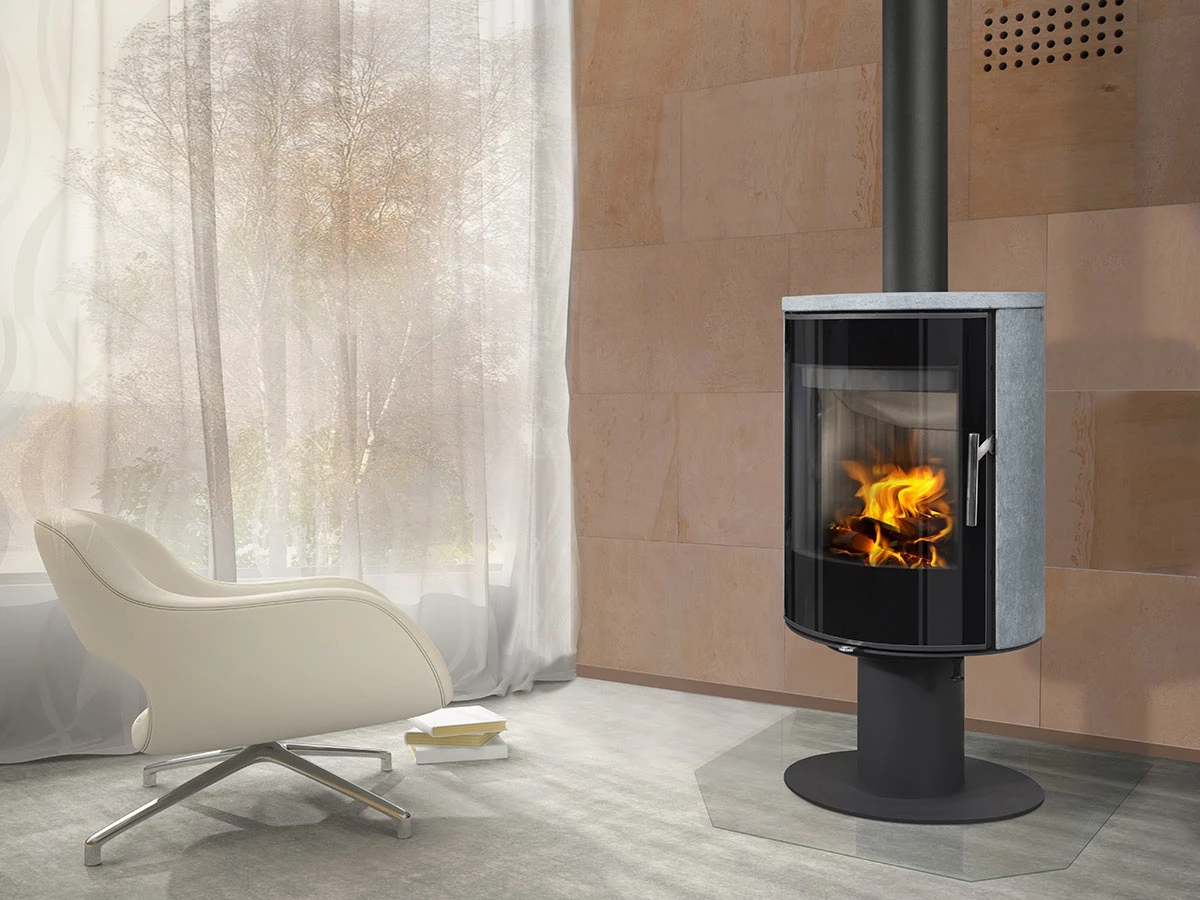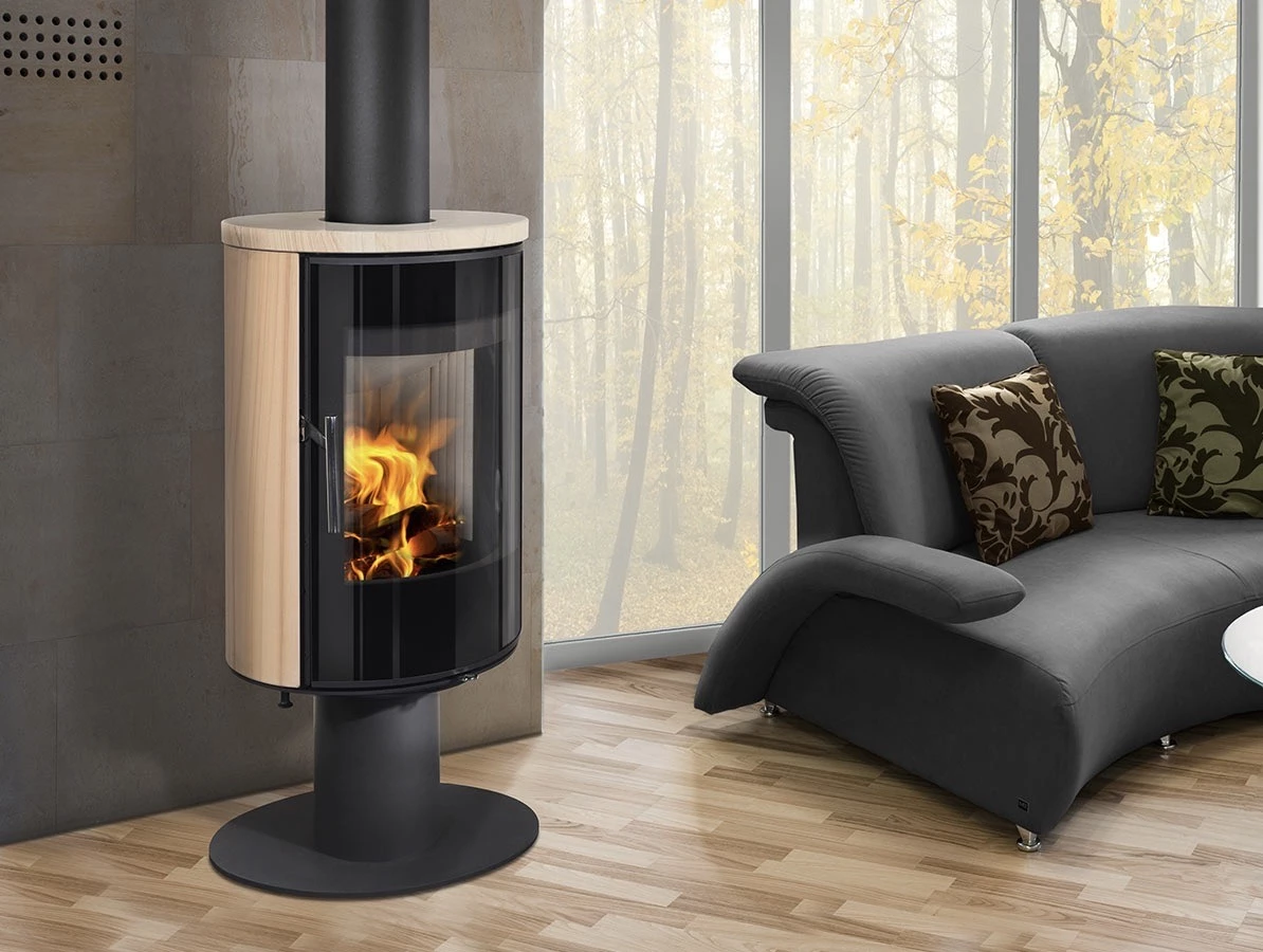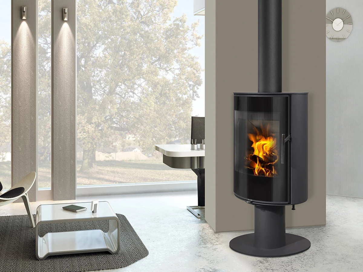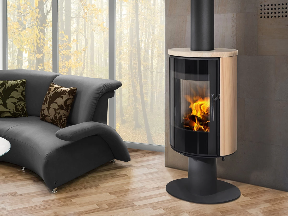 Piękny i elegancki piec obrotowy LAREDO T umożliwia widok żywego ognia z wszystkich zakątków Twojego mieszkania.