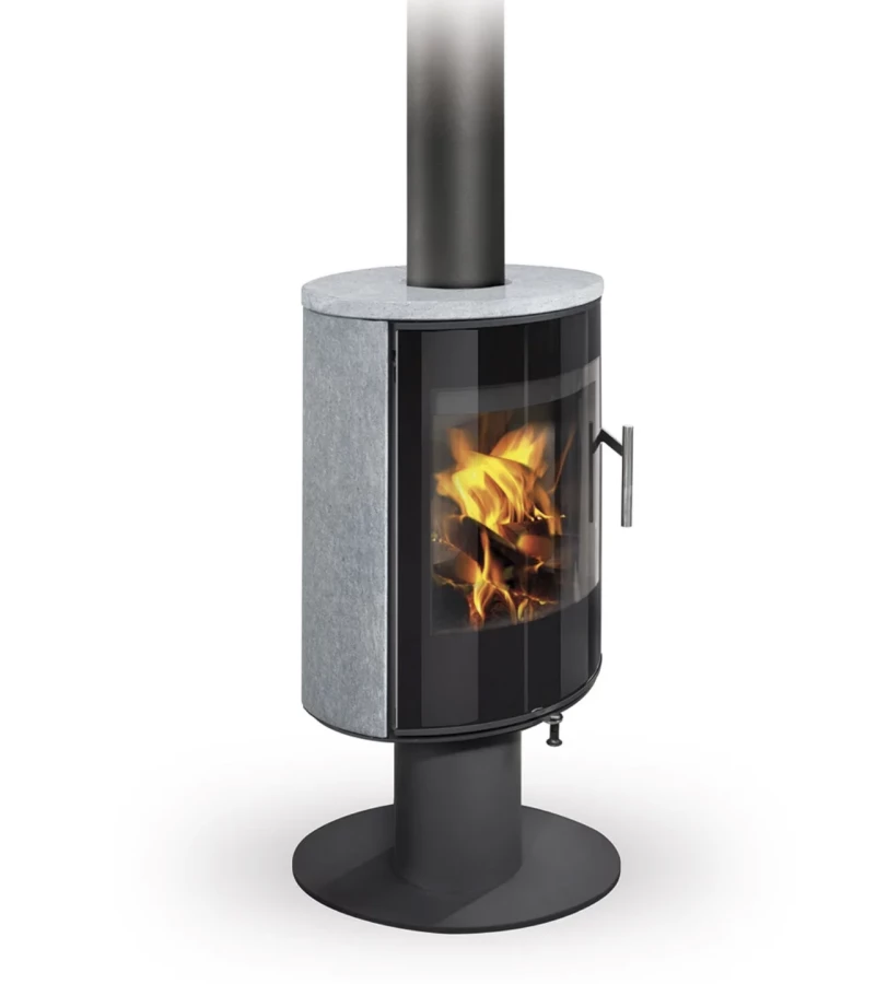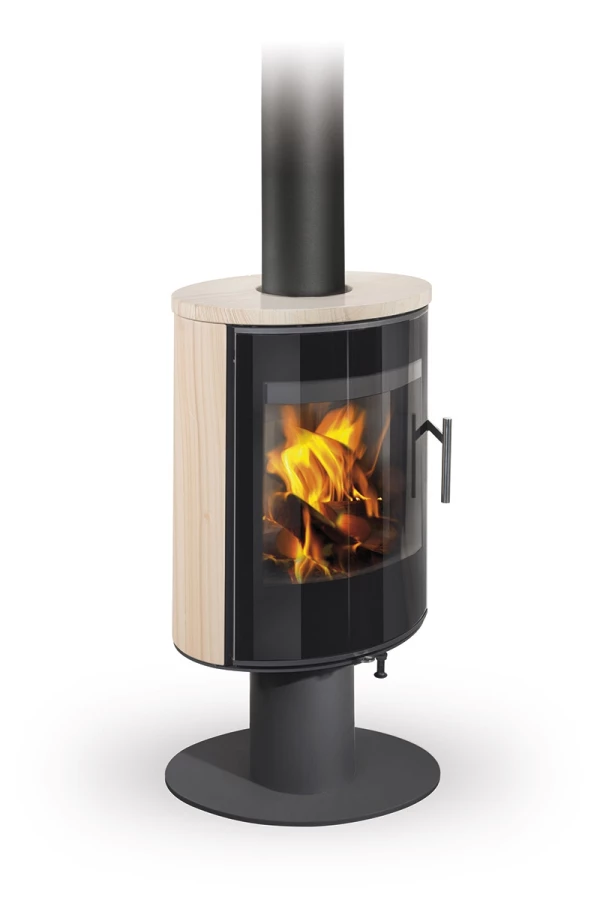 Piec kominkowy odpowiedni do domów energooszczędnych. Drzwiczki pieca mają designerski nadruk na wielkopowierzchniowym przeszkleniu. Posiada system CDP – centralne doprowadzenie powietrza zewnętrznego. Standardowo możliwe jest podłączenie górnego lub tylnego odprowadzenia spalin. Dzięki dopływowi powietrza wtórnego, które opływa szybę drzwiczek, nie dochodzi do osadzania zabrudzeń. Komora spalania wyłożona szamotem. Regulacja dopływu powietrza pierwotnego i wtórnego za pomocą jednego elementu sterującego. Obrotowe palenisko zapewnia użytkownikowi widok ognia pod różnym kątem. Wzornictwo wzmacniają polerowane nierdzewne elementy sterujące i w całości szklane drzwiczki pieca.