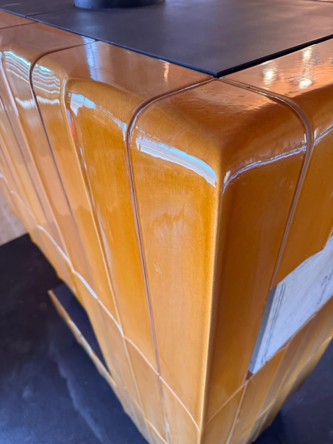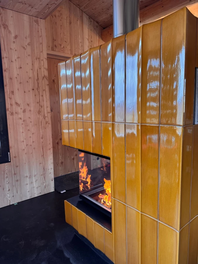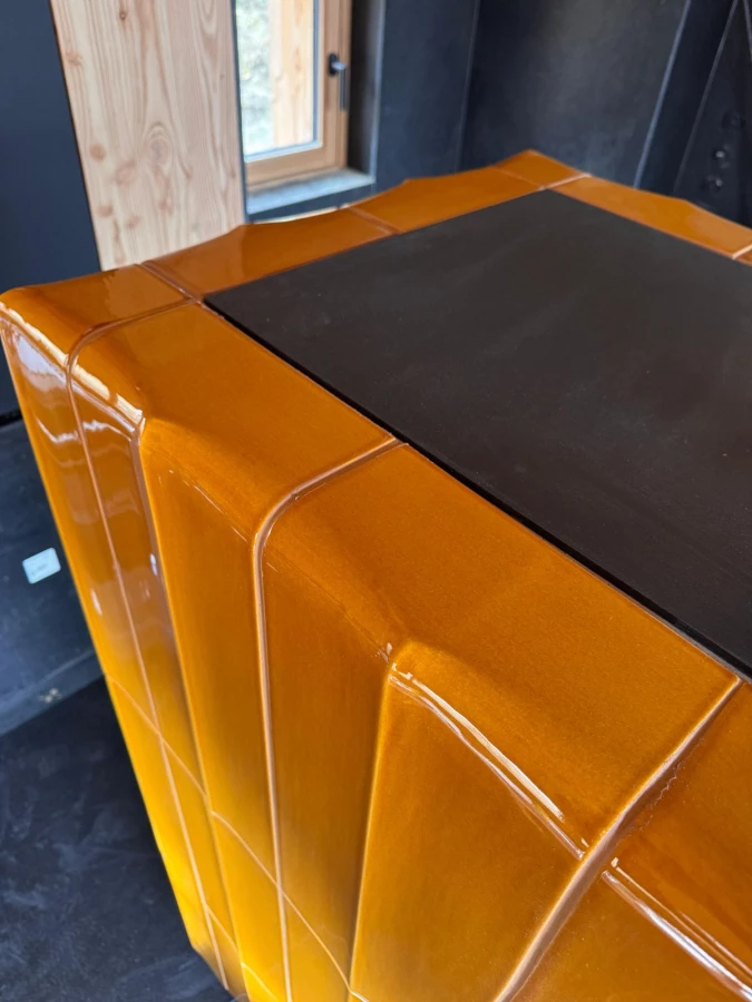 Obudowa kaflowa wykonywana jest ręcznie, nowoczesną metodą zduńską. Do produkcji wykorzystujemy ceramikę Kaufmann, duże kafle FOLD w kolorze miodowym. Istnieje możliwość wykonania obudowy w innej kolorystyce oraz z zastosowaniem kafli o odmiennych zdobieniach. Wszystkie kafle pochodzą z niemieckiej kaflarni o wieloletniej tradycji.